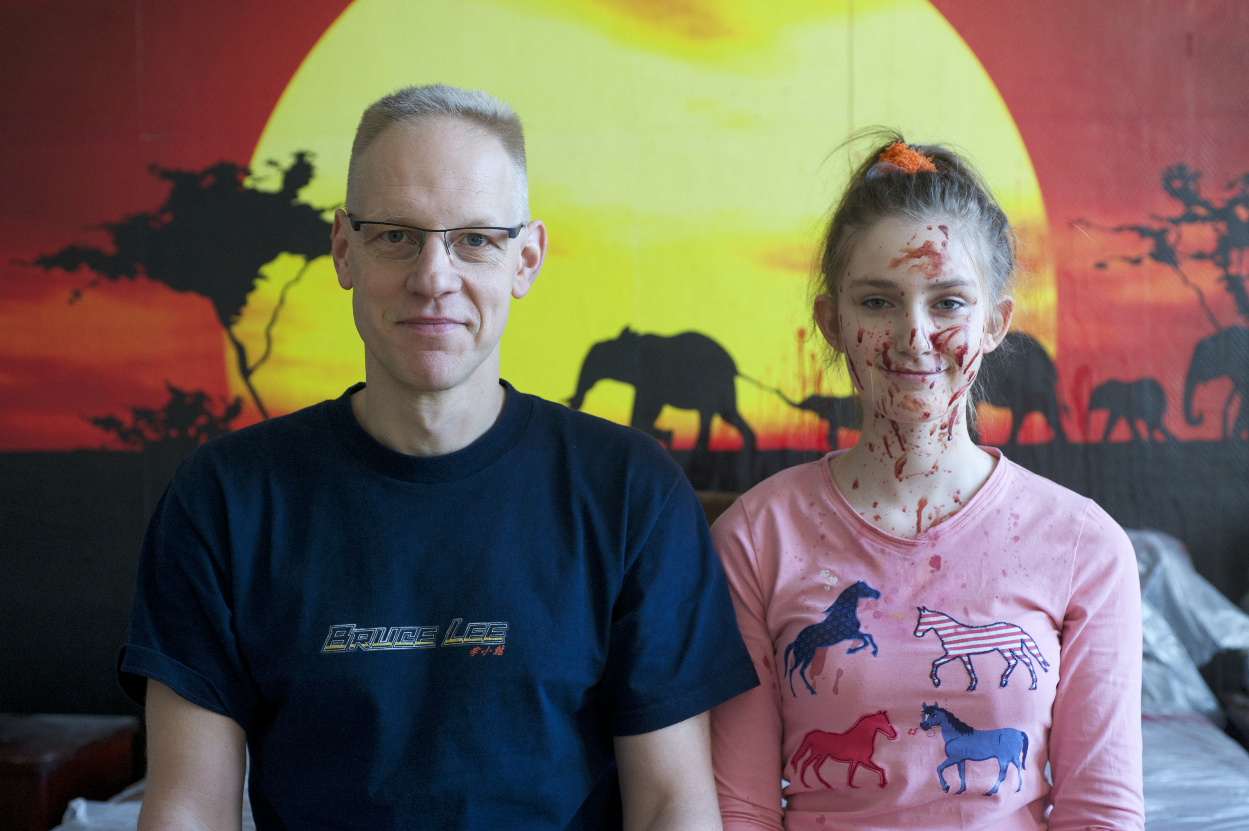 Junto a Paul Naschy en una foto perteneciente a una sesión promocional realizada en casa de Vic