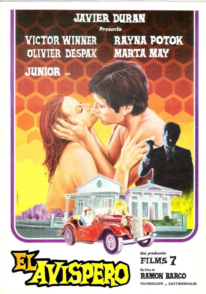 “Ni se rodó en Chile ni fue una coproducción de verdad, sino de pacotilla de las de entonces. Lo que sucedió en verdad fue lo siguiente: A una alemana loca que trabajaba en la televisión alemana le dieron una subvención en Alemania para realizar una TV movie del cuento del mismo título del poeta alemán del romanticismo Heinrich von Kleist, que como buen romántico se suicidó. Como la directora alemana quería hacer una película para la pantalla grande, se presentó en Madrid con su amigo y director de fotografía y la ‘pasta’ en marcos, que cambiados sumaron unos cuantos millones de pesetas. Se buscó un productor español -que no recuerdo- para que le diera el “service”, y a quien le entregó la ‘pasta’. Ese productor se encargó de organizar la producción en Madrid, para que pareciera Chile (¿?) y la legalizó en el Ministerio como una coproducción -en aquella época el tener coproducciones con productoras extranjeras te daba derechos de importar películas -, donde él, que yo sepa, no puso un duro, sino que se pagó todo con dinero alemán. La historia iba sobre el preceptor mestizo de una jovencita blanca, a quien deja embarazada. La familia prócer de ella la mete en un convento, y durante uno de esos terremotos que hay en Chile todos los días, la joven se escapa del convento y da a luz en plena naturaleza -como debe ser para los románticos, que eran los ecologistas de entonces-, creo que en un riachuelo. A mí me escogió la directora porque vio un retrato mío en la fachada del Cine Gran Vía, donde yo aparecía en gran tamaño como el indio Lautaro en el estreno de la Araucana, que fue por aquella fecha. Esa película, o lo que fuera, que vi no hace mucho en video y que creo no llegó a las pantallas de los cines, es quizás donde peor lo pasé. La directora ni siquiera hablaba inglés, sino que daba sus instrucciones en alemán, que el ayudante de dirección nos traducía como podía. Total un desastre. Un día me enteré que la directora dio por finalizado el rodaje y se despidió a la francesa. Y no sé más. En cuanto a El Avispero, del malogrado Ramón Barco (qepd)[7], recuerdo que mi pareja era una catalana muy guapa y muy buena actriz, Marta May, que en una escena me introduce en la boca, mientras duermo, unas abejas para que, al picarme, la garganta
