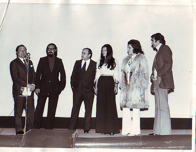 Premiere en Madrid de El espanto surge de la tumba (de izq. a drcha. crítico no identificado, Carlos Aured, Paul Naschy, María José Cantudo, Helga Liné y Vic Winner.
