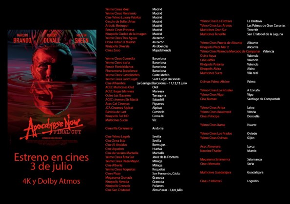 Como es bien sabido APOCALYPSE NOW ha vuelto a los cines, ahora en forma de ‘Final Cut’ desde el 3 de julio. Se trata del nuevo montaje realizado con motivo del 40º aniversario de la película que se presentará con una nueva copia en 4K y sonido Dolby Atmos.