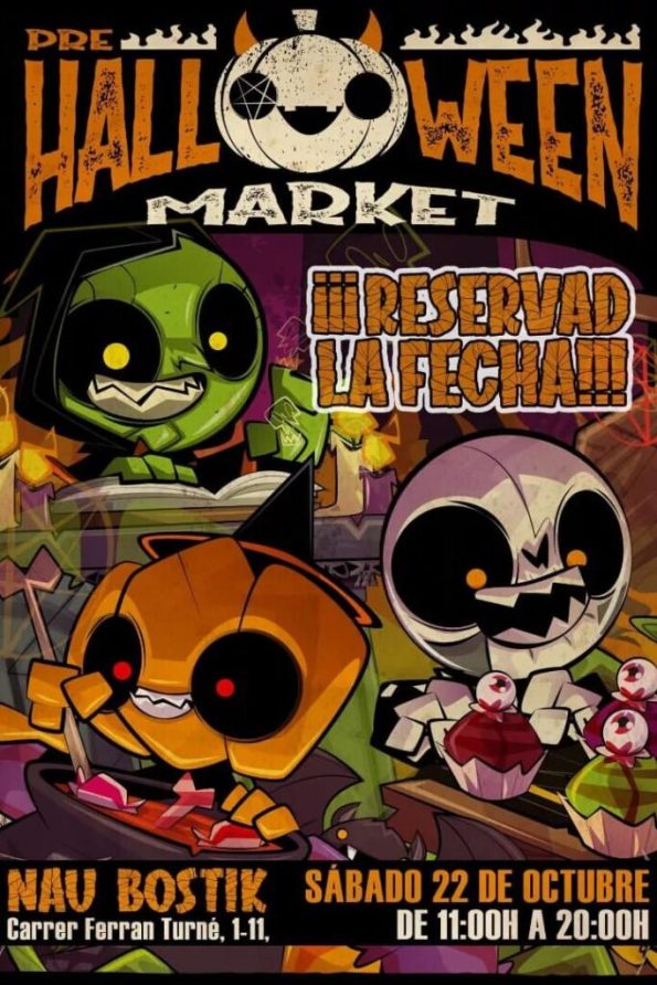El sábado 22 de octubre varios indeseables juntaron fuerzas de manera totalmente altruista para organizar en la Nau Bostik el primer Pre-Halloween Market, un mercadillo de temática Halloween en el que hubo más de 20 stands, concurso de disfraces, música en directo, servicio de bar y Escape Rooms y que visto el éxito de asistencia y el buen ambiente conseguido, estamos seguros de que será el primero de un largo número de eventos anuales. Allí nos juntamos muchos desarrapados recién llegados del festival de Sitges, punkabillys, psychobillys y otras aves nocturnas con un objetivo común: ¡¡¡Divertirse entre calaveras y calabazas para celebrar la llegada de una nueva noche de Halloween!!!