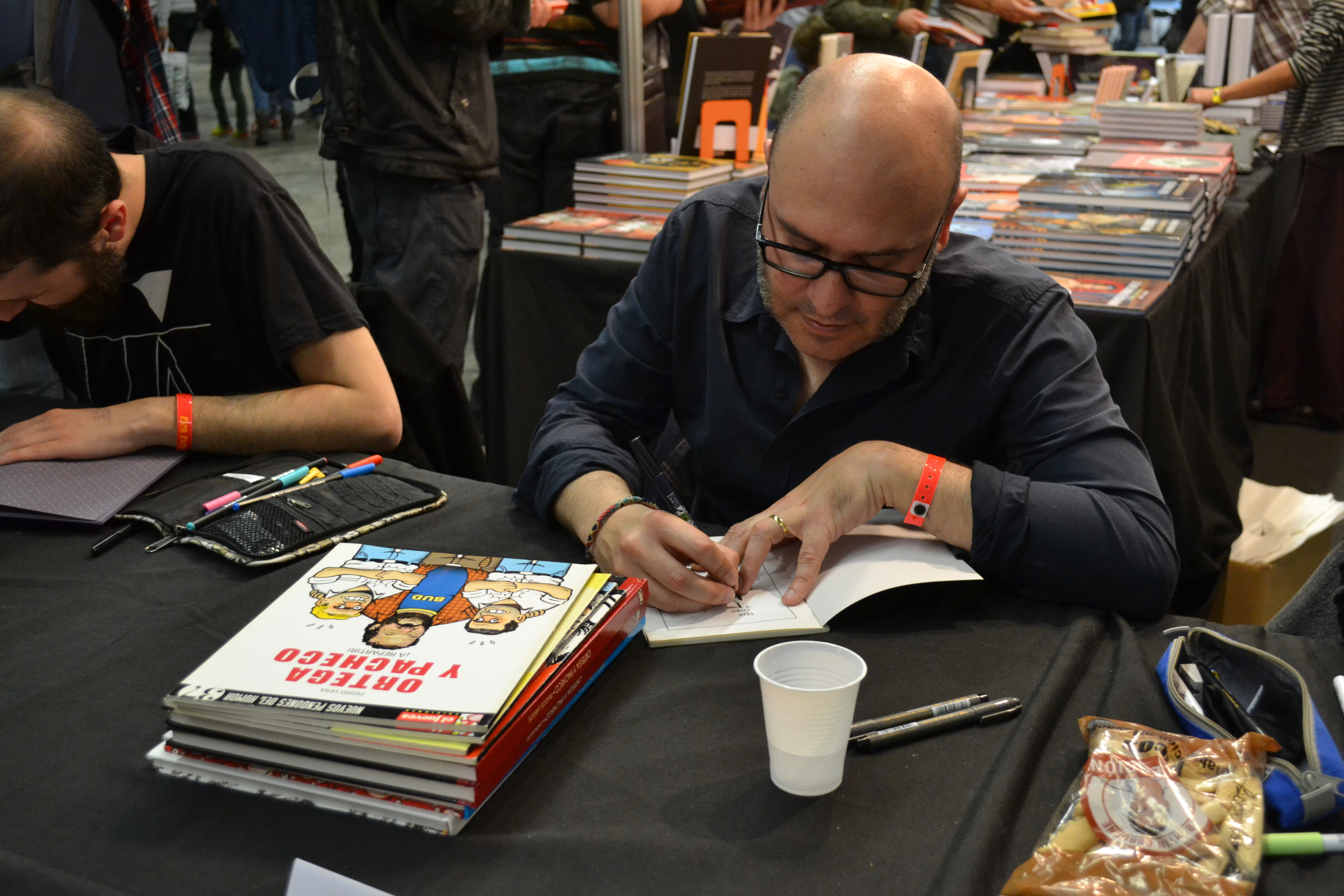 Por nuestra parte nuestros objetivos fueron conseguidos: saludar a viejos conocidos y amigos, entre ellos artistas, que tuvieron la paciencia de volver a emborronarnos uno de sus cómics: Paco Roca, Kim, Altarriba y Frank Miller. Paco presentaba La casa, su último cómic, mientras que Kim y Altarriba lo hacían de El ala rota, una magistral obra que cubre varios años de la vida de una mujer española, la propia madre del autor, como ya hiciera con su padre en la galardonada El arte de volar. Dos recomendable obras en las que Kim ofrece la mejor versión de su arte. Mención especial se merece Pedro Vera, que tantos buenos momentos nos ofrece con sus magistrales Ranciofacts, una fantástica serie que, tal y como nos aseguró, para noviembre contará con su tercera entrega. Ya le estoy reservando sitio en mi comicteca, que ando algo harto de releerme los dos anteriores.