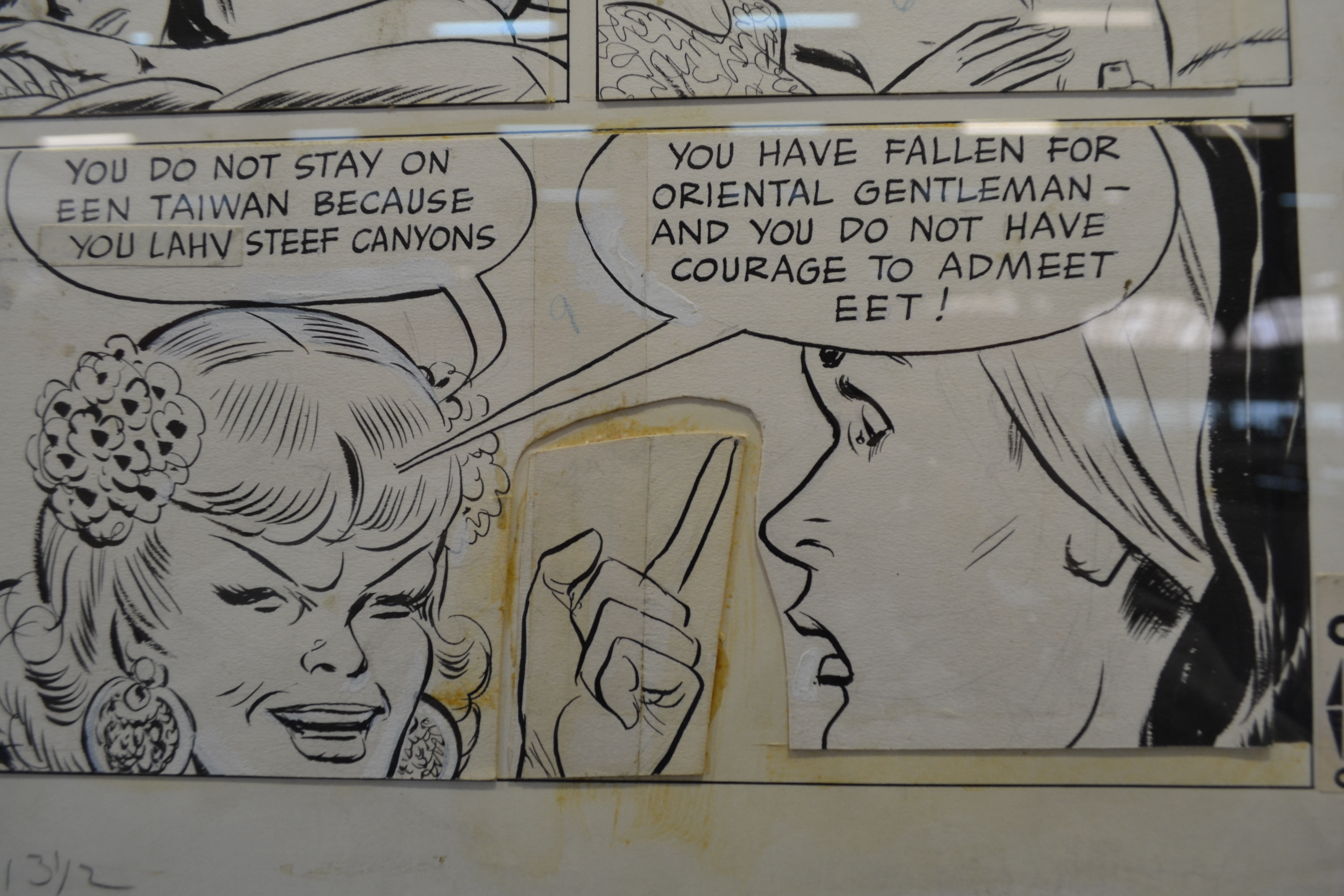 La muestra se iniciará con algunas tiras de Scorchy Smith de Noel Sickles, amigo de Caniff y que tanto influyó en su obra. Sickels empezó a aplicar el juego de luces y sombras que Caniff desarrollaría y maduraría. Seguidamente, se expondrán tiras diarias y páginas dominicales de Terry y los piratas, una de las mejores series de aventuras de la historia cómic mundial. La revisión de la obra de este autor continuará con Male Call, protagonizada por Miss Lace, una serie publicada en los periódicos militares durante la II Guerra Mundial. Finalmente, se mostrarán originales de la otra gran saga de Caniff, la del aviador Steve Canyon, un veterano de la II Guerra Mundial que vive todo tipo de aventuras en Extremo Oriente y que acaba participando en los conflictos de Corea y Vietnam.Los horizontes ilimitados de Milton Caniff es una exposición comisariada por Bernard Mahé, reconocido galerista francés especializado en originales de cómic, propietario de Galerie 9e Art, y que también es el responsable de las subastas de cómic de Sotheby’s París.
