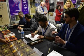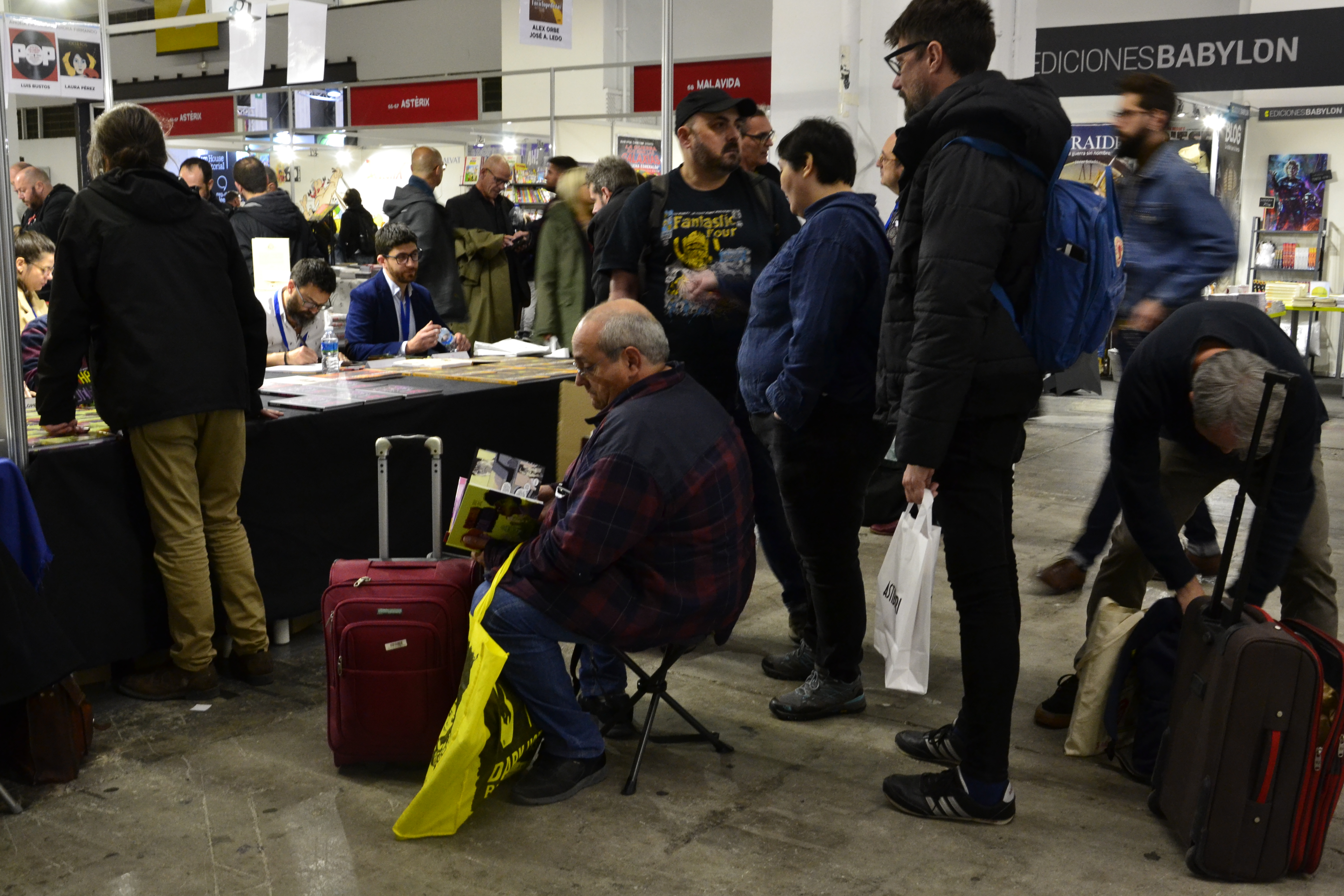 Y las firmas de ejemplares por los autores, que naturalmente provocó colas que muchos aliviaron con sus sillas portátiles…