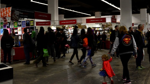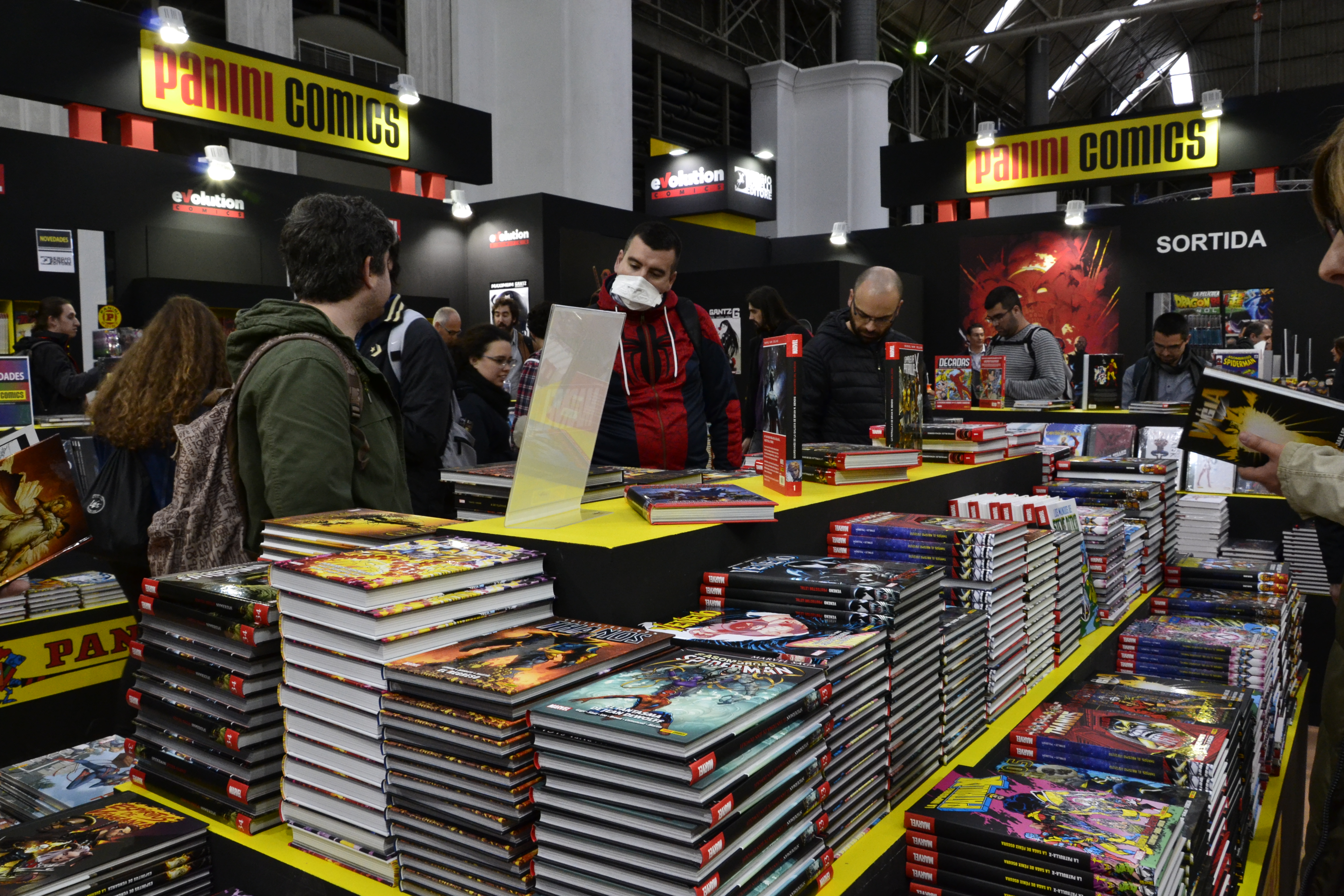 el visitante los stands de las editoriales más pequeñas, pero no por ello menos importantes. Y junto a estas editoriales, en un lateral, la zona dedicada a los fanzines y la autoedición. Y celebramos que no se encontrara, como sucedía en otras ediciones, apartada del meollo, relegada a un extremo, no, formaba parte del espacio principal y eso nos ha parecido muy bien. También había zona específica para los stands de objetos y artículos más ajenos al cómic, concretamente esos stands que todos nos hemos preguntado alguna vez qué diablos hacen en un salón del cómic. Como también los video juegos, ubicados en un mismo espacio, todo lo cual ayudó a repartir al público por intereses. Repetimos, nos pareció una distribución realmente acertada, en la que tan solo quizás fallaba el espacio que había que recorrer para visitar las exposiciones, situadas en otro pabellón y repartidas en dos pisos: uno para la de homenaje a Stan Lee y otro para el resto. En todo caso a pesar de haber contado con un día menos de salón y de la gran afluencia de público (un total de más de 112.000 visitantes), se ha podido circular de manera cómoda, sin aglomeraciones importantes y con espacio suficiente para poder disfrutar de todo lo que la organización había puesto a disposición del público.
