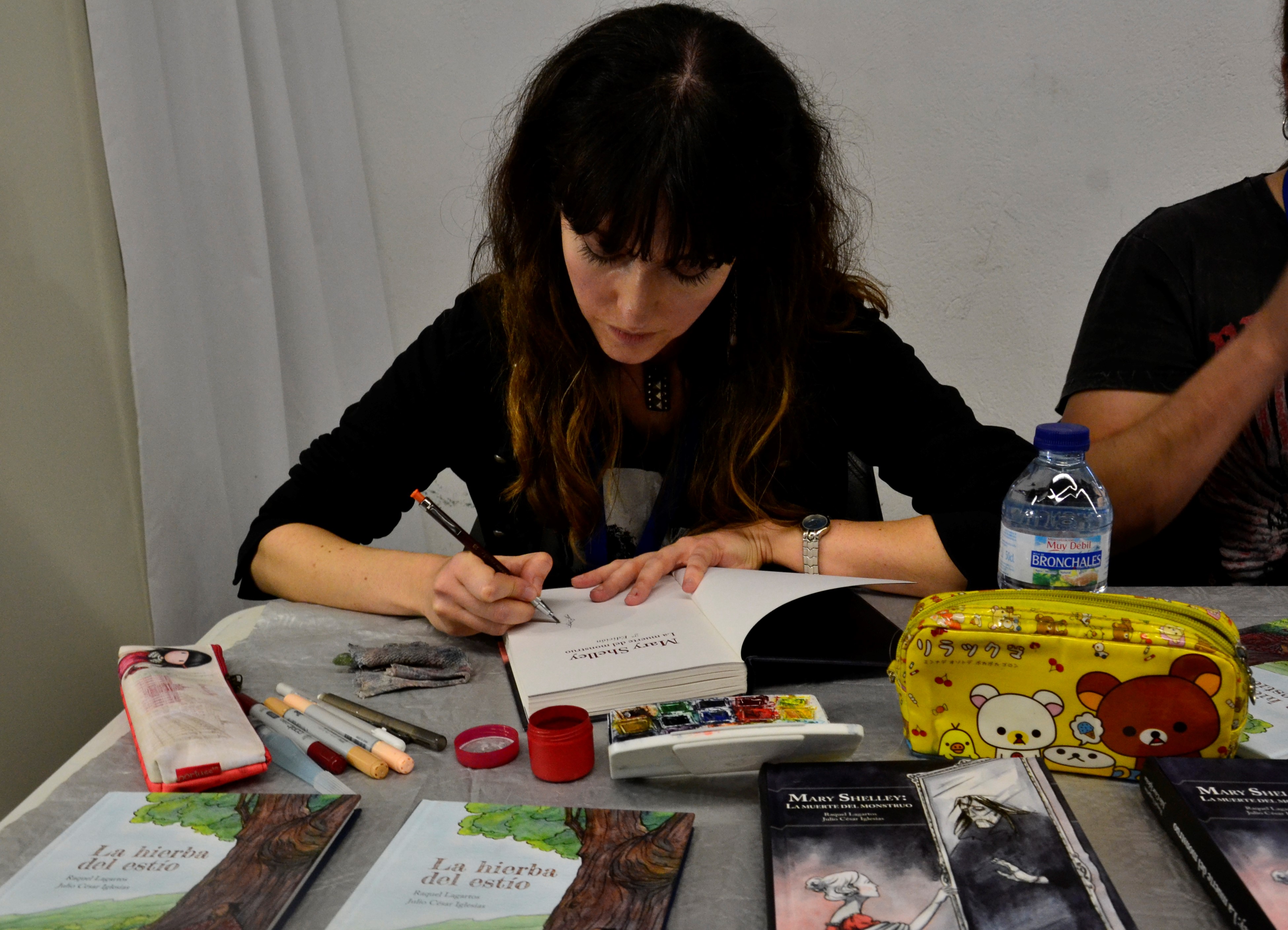 Serendipia también tenía muchas ganas de saludar personalmente a Raquel Lagartos y Julio César Iglesias, autores de dos de las novelas gráficas que más nos han gustado de los últimos años: Mary Shelley, la muerte del monstruo y La hierba del estío, deliciosas obras en las que su ilustradora, Raquel Lagartos, experimenta diferentes técnicas pictóricas algo que, tal y como ambos nos aseguraron, se prolongará en la nueva obra que están preparando y de la que tan solo nos adelantaron que no tendrá nada que ver con lo publicado hasta ahora. Tocará pues esperar pacientemente y releer una novela gráfica tan compleja y completa como la dedicada a la autora de Frankenstein, narración que deja en evidencia la pobre y folletinesca versión de la vida de Mary Shelley que se estrenó recientemente en nuestros cines. Ambas novelas gráficas están editadas, con excelente calidad, por Diábolo