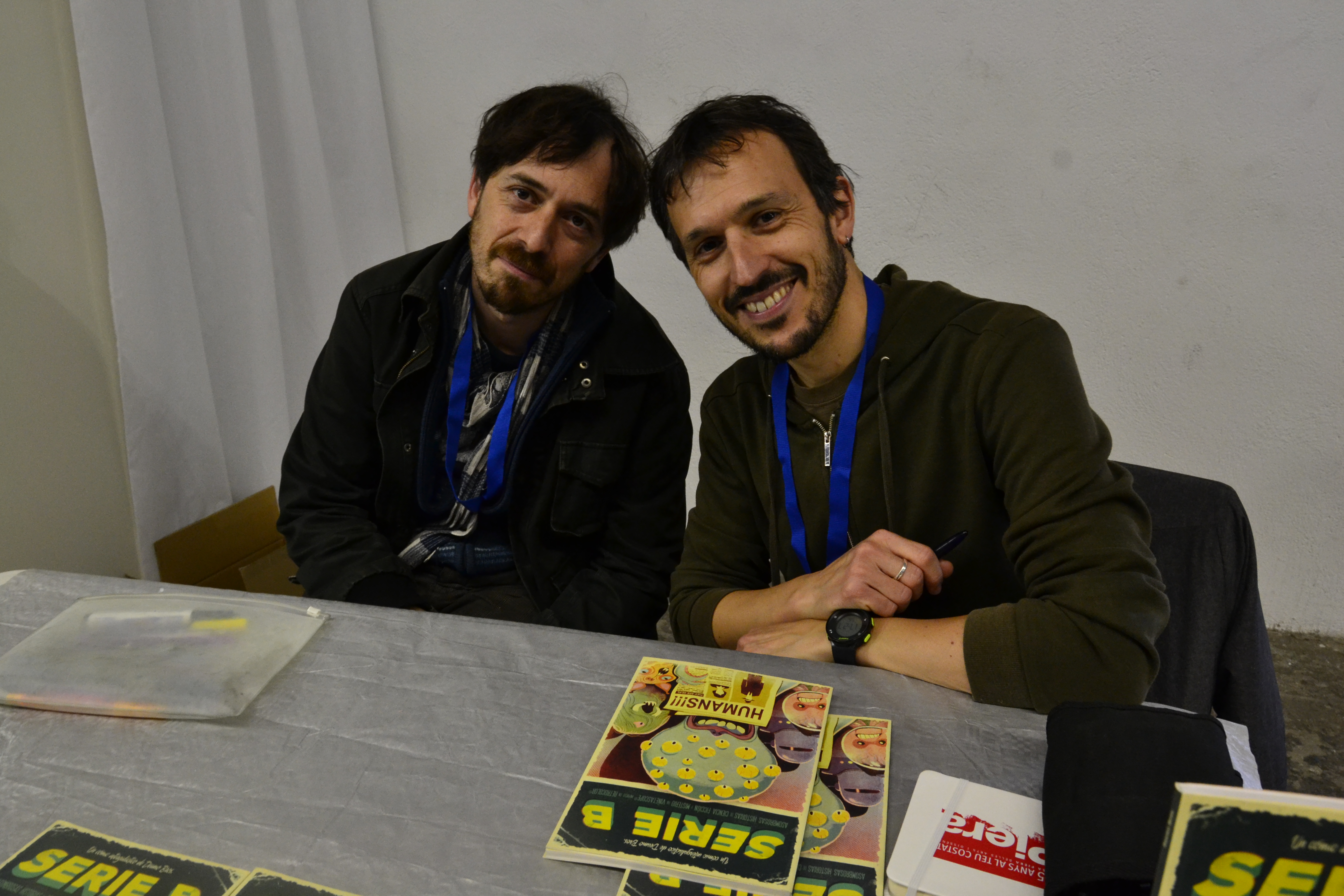 Finalmente, y en otro orden de cosas, también en el stand de Diábolo Ediciones pudimos conocer a los Deamo Bros, Danide y Raúl Deamo, que dedicaban su muy recomendable Serie B, una colección de divertidas y trepidantes historias de ciencia-ficción y misterio salpicadas de guiños y referencias a conocidas películas y novelas, en especial de los años 50, y en las que que el presente más cotidiano y la dimensión fantástica más desquiciada se entremezclan con el humor más desacomplejado.