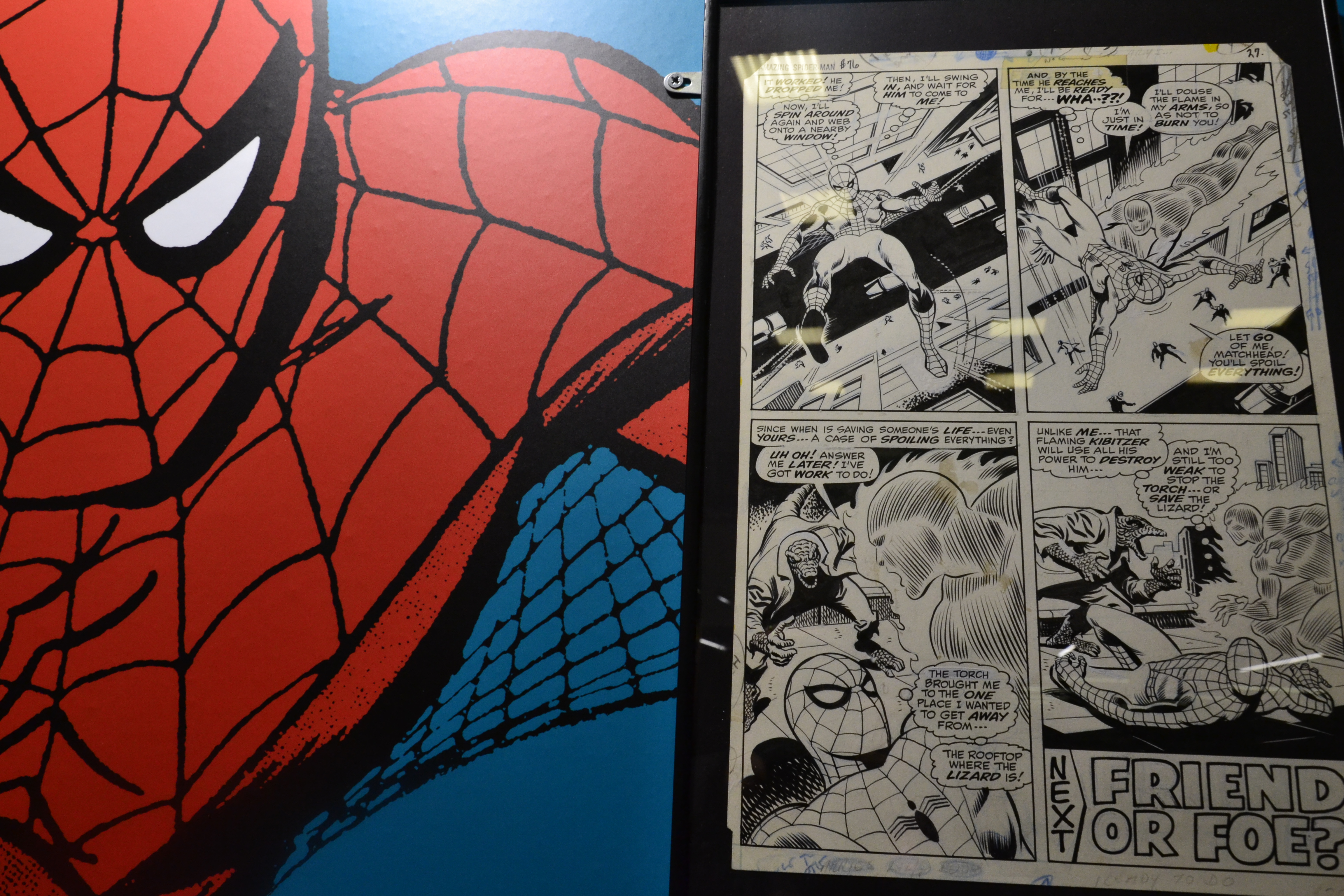 que, ahora que Stan Lee nos ha dejado, Comic Barcelona, no podía ignorar su figura y organizó un homenaje a su altura con Stan Lee & The American Comic Book, una excelente exposición con paneles dedicados a sus personajes más populares, y en cada uno de ellos planchas originales para disfrute del aficionado más exigente. Hojas repletas de magia dibujadas por las plumas más famosas del cómic norteamericano: Jack Kirby, John Buscema, John Romita… Una exposición que se completaba con otra, compuesta por dibujos originales realizados por autores autóctonos que se subastaron a beneficio de la ONG Open Arms.