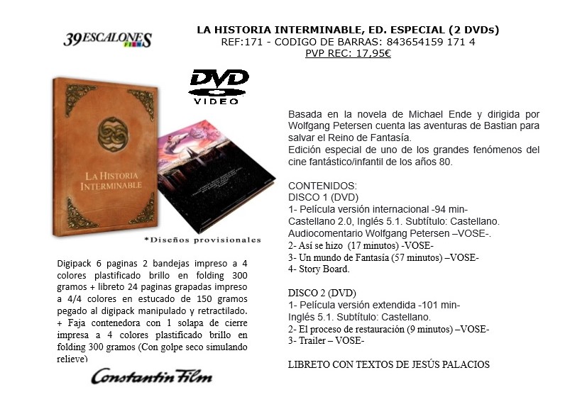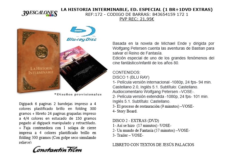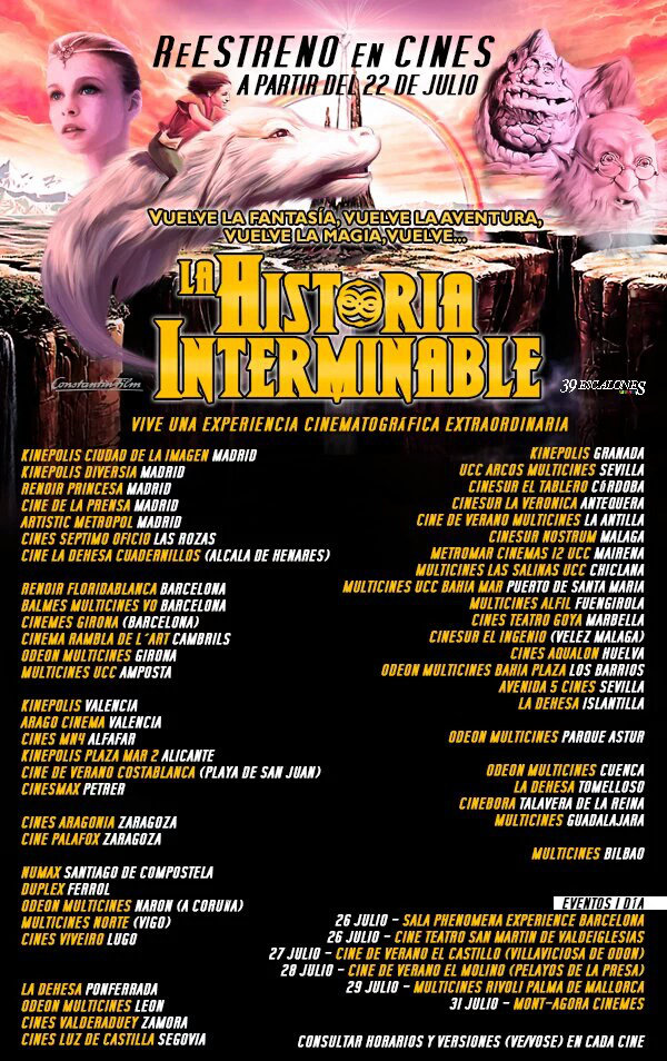A partir del 22 de julio de 2016, y a lo largo de toda la geografía española ya sea mediante programación regular o eventos bajo demanda, se reestrenará en pantallas cinematográficas la película LA HISTORIA INTERMINABLE de la mano de 39 Escalones