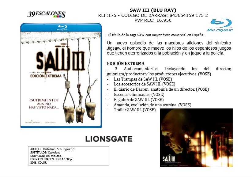La historia interminable, La huella del crimen, Saw III, Pi… 39 Escalones presenta sus novedades