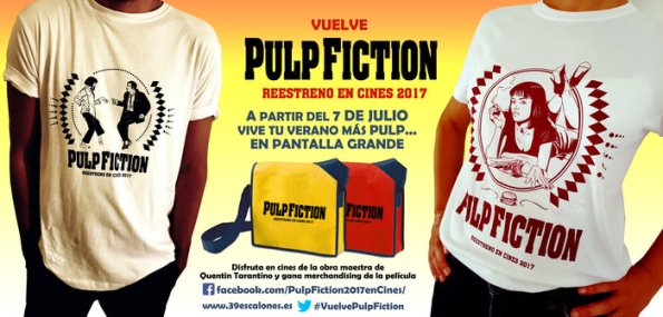 A partir del próximo 7 de julio tendrá lugar con 39 Escalones el reestreno en cines españoles de PULP FICTION la obra maestra de Quentin Tarantino en mas de 70 cines. La acogida ha sobrepasado todas las previsiones y es posible que aumente el número de salas de cine que acojan la película. En breve daremos a conocer un listado provisional de salas de cine.