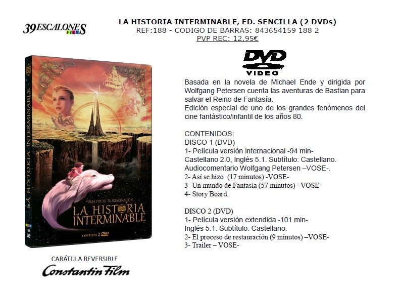 Ya les avisamos desde Proyecto Naschy de que volvía a los cines La historia interminable. La espera ya ha terminado y desde este mismo viernes pueden disfrutarla en la lista de cines que publicamos. Pero hay más, 39 Escalones y Proyecto Naschy lo celebra con un sorteo la mar de sencillo con el que obtendrán una pieza de merchandising exclusivo. Tan solo tienen que responder a la pregunta que tienen al final de esta entrada.