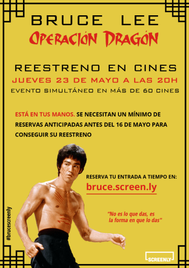 ¿Quieres volver a ver la mítica película de Bruce Lee en el cine de tu ciudad? Está en tu mano conseguirlo. No te pierdas una noche inolvidable con Bruce Lee en pantalla grande.