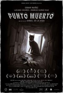 Todo lo que sabemos del director argentino Daniel de la Vega es gracias a nuestro amigo Ramiro García Bogliano, que nos recomendó su película Ataúd Blanco: El juego diabólico (2016), con argumento de Ramiro y Adrián García Bogliano y una magnífica cinta que hizo que se despertara nuestro interés por el argentino. Y más viendo algunos tráilers de sus otras obras, como Hermanos de sangre (2012), Necrofobia (2014) y este Punto muerto, que tuvimos ocasión de ver en el festival y que fue presentada por Magalí Nieva, una de las productoras de un film que también ha contado con la participación de los hermanos Onetti. Y es que ¿cómo no nos iba a interesar una historia en la que uno de sus protagonistas, escritor, responde al nombre de Luis Peñafiel? Pues más allá de este guiño a Narciso Ibáñez Serrador, Punto muerto es una competente intriga policial con amplias dosis de fantástico narrada en clave retro y en un delicioso blanco y negro que indaga sobre lo que ya hiciera Poe en su Doble asesinato de la Calle Morgue, no en vano otro de los personajes se llama Dupuin: hallar la manera de huir de una habitación cerrada tras cometer un crimen ¿El resultado?: deberán ver Punto muerto y averiguarlo.