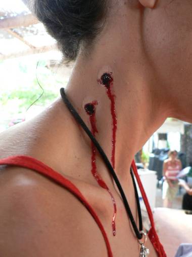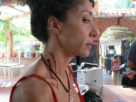 El rodaje fue genial y yo estaba en el limbo, haciendo lo que más me gusta.La relación con mis compañeros, mejor imposible, incluso ha quedado una bonita amistad con Ángel Mora y su esposa Lilla. Y, como la sinceridad me caracteriza, tengo que decir que con el único que tuve problemas fue con Antonio. Era el que llevaba la producción y no me gustaron sus «maneras». Permíteme que sea sincera pero que no dé detalles.Mi maquillaje era «normal» solamente los mordiscos del final, así que no hay mucho que contar.