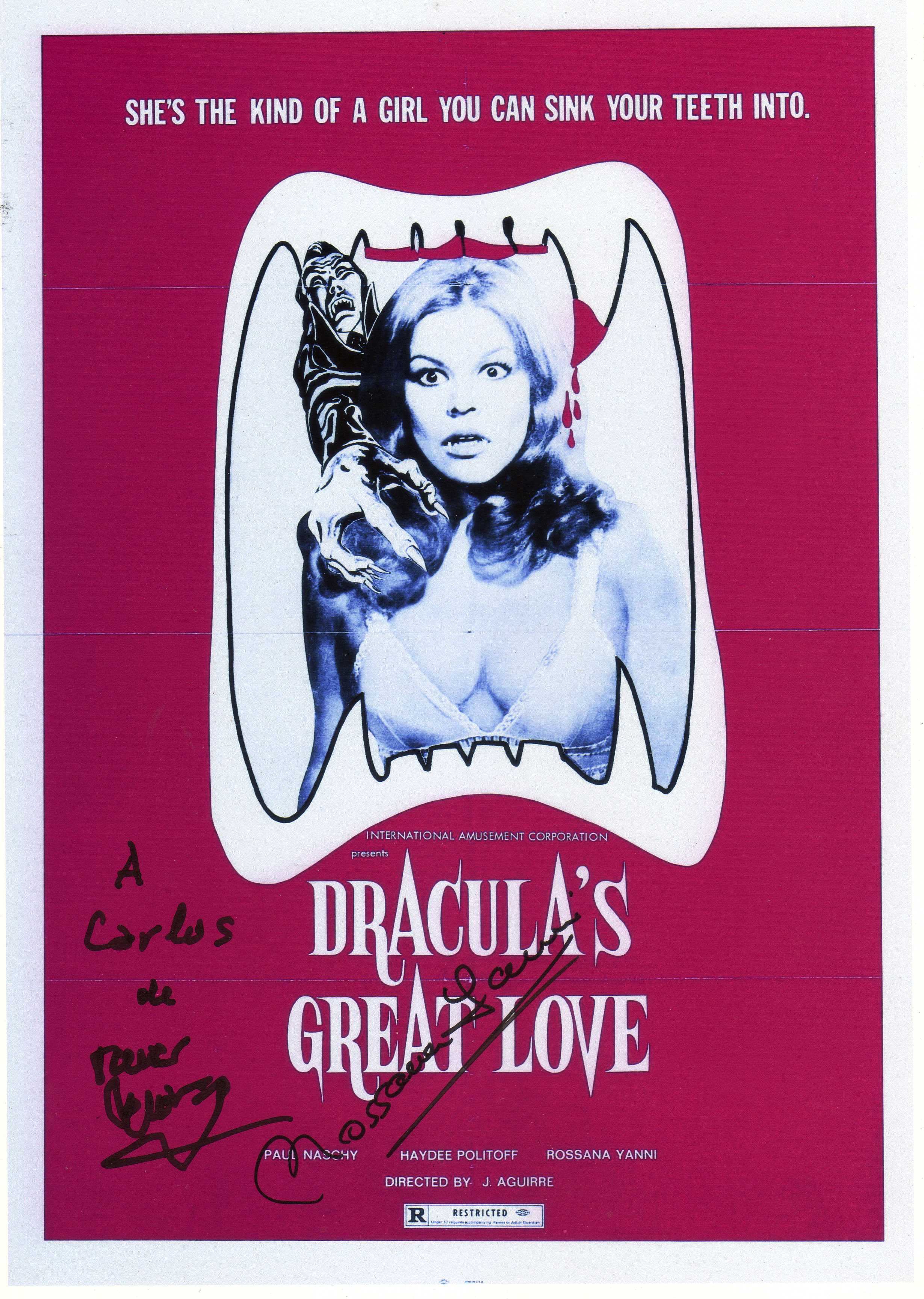 Esta actriz argentina de contundente físico y de presencia tan familiar en el cine de género que se hizo en la España de los 70, comenzó formando parte de repartos de comedias dirigidas por Pedro Masó, Pedro Lazaga o Fernán Gómez en las que interpretaba a señoras estupendas, de ensueño, muchas veces la sueca o la alemana liberada. El sueño imposible del españolito medio. Aunque también tuvo oportunidad de interpretar registros dramáticos en cintas como El paseíllo (Ana Mariscal, 1969) o Cuadrilátero (1970), drama pugilístico de Eloy de la Iglesia. Y naturalmente también ha participado en algunos de los títulos favoritos del degustador de cine fantástico y de terror español. Jesús Franco la dirige a finales de los años sesenta en El caso de las dos bellezas y Bésame, monstruo, formando tándem junto a Janine Reynaud. Cae fulminada bajo las garras del licántropo en La marca del hombre lobo (Enrique López Eguiluz, 1969), coincidiendo nuevamente con Paul Naschy en El gran amor del conde Drácula (1972) y El jorobado de la morgue (1973) de Javier Aguirre. A las órdenes de Amando de Ossorio interviene en Malenka, la sobrina del vampiro (1969), compartiendo reparto con nada menos que Anita Ekberg.