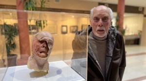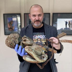 El comisario de la exposición, Víctor Matellano con la criatura de la película ‘La Grieta’.