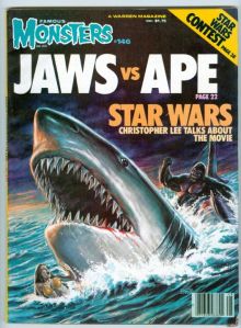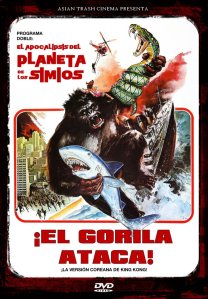 ¿Les suena, verdad?, pues bien, este pastiche, producto de una entente coreano/americana/tailandesa de 1976, no tiene desperdicio a la hora de sumar despropósitos. Supongo que el avispado equipo habría escuchado que De Laurentis se encontraba rodando un remake del King-Kong original de 1933, así que pensaron que ellos también podrian hacerlo e incluso adelantarse a los yankees, consiguiendo estrenarla un mes antes en Estados Unidos (¡!) . Pero eso sí, con algunos ligeros cambios y añadiendo… ¡El 3-D!. Así que, aunque la versión del dvd es normal, preparense para ver infinidad de objetos enviados directamente hacia la cámara, muchos visiblemente sujetados con hilos…