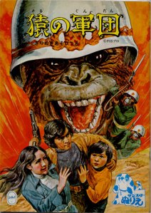 Si el primer título del pack que nos ofrece Asian Trash Cinema no tiene desperdicio, el otro se puede considerar toda una rareza ahora que están tan en boga nuestros peludos amigos con la recomendable El origen del planeta de los simios. Se trata de la japonesa El apocalipsis del planeta de los simios, que condensa en forma de largometraje la serie de televisión Saru no gundan (1974), basada en la franquicia simia, aunque con la particularidad de ser más bien infantil y con unos maquillajes bastante pobretones. Una curiosidad para completistas. El largometraje, cuyo título original es Time of the Apes, lo montó en 1987 el productor americano Sandy Frank con destino a la televisión por cable, y nos narra como dos niños y una joven son crionizados accidentalmente y despiertan en… ¡El planeta de los simios japoneses! Donde pasarán por mil peripecias hasta que… bueno, no les voy a contar como termina, pero pueden suponerse que la conclusión jugará con el tiempo.