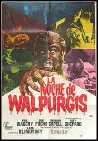 En esta ocasión Waldemar lucha contra su maldición buscando autodestruirse pero antes habrá de enfrentarse a la vampira Wandesa Dárvula de Nadasdy, una especie de Condesa Bàthory (de ahí que sea acertado el título americano The Werewolf vs. Vampire Woman), lucha de la que saldrá victorioso y con ayuda del amor se librará de su propia maldición. Título importante del fantaterror español que combinó aires de la Hammer por influencia de Klimovsky y de la Universal por obra de Naschy. Nos consta que Naschy tenía especial querencia por La Noche de Walpurgis, por ello no dejó de homenajearla en su última película: Empusa.