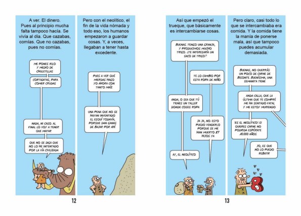 A ver, con lo que les cuenta Igor en Lo que nunca le contaron sobre… el dinero no van a solucionar sus eternos problemas de liquidez. Ni siquiera les podrá servir de consuelo ni les dará consejos sobre cosas como ahorrar, pero podrán reírse de ello como antes pudieron hacerlo con el trabajo (adocenante o sobre la falta del mismo) y de la búsqueda de piso, temas a los que el autor dedicó los dos primeros y divertidos libritos de esta serie que comprende material publicado previamente en TMEO y El Jueves y que Igor recupera unificándolos temáticamente con viñetas realizadas específicamente para estos tomos, con un resultado que se aleja del simple refrito. Entre sus divertidas (y trágicas) hojas podremos ver la historia del dinero; nuestra relación de amor-odio con los bancos; las criptomonedas; consejos para tirar el dinero; la declaración de la renta; la corrupción o el FMI… todo tiene cabida en Lo que nunca te contaron sobre…el dinero un esclarecedor tomito realizado por Igor, uno de los más interesantes colaboradores de la revista El Jueves y que nos lo ofrece el autor de la única manera soportable: con muchísimo humor.