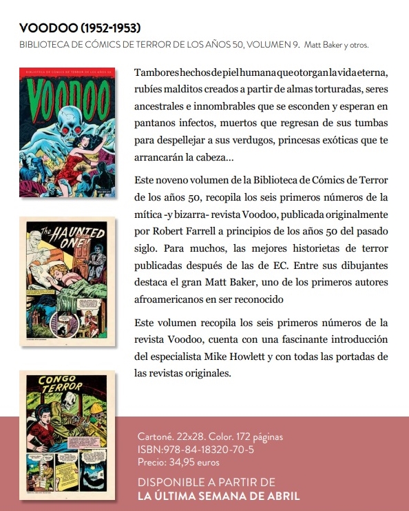 Todo en un volumen que reúne lo mejor cómic de terror de los años cincuenta, con todo su encanto naif, buenas dosis de humor negro y sus siempre ingeniosos finales sorpresa y con el que Diábolo Ediciones contribuye a dar a conocer unos cómics y artistas nunca antes publicados en nuestro país