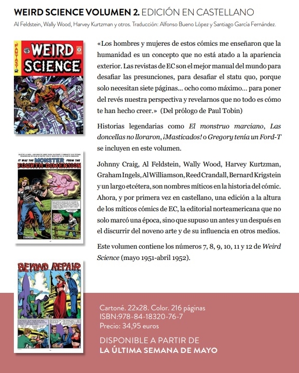 (1) Hasta entonces las series EC que se estaban publicando, en orden cronológico, eran: Tales from the Crypt (abril-mayo 1950), The Vault of Horror (abril-mayo 1950), Weird Fantasy (mayo-junio 1950), Weird Science (mayo-junio 1950), The Haunt of Fear (octubre-noviembre 1950), Crime Suspenstory (octubre-noviembre 1950) y Two-Fisted Tales (noviembre-diciembre 1950).