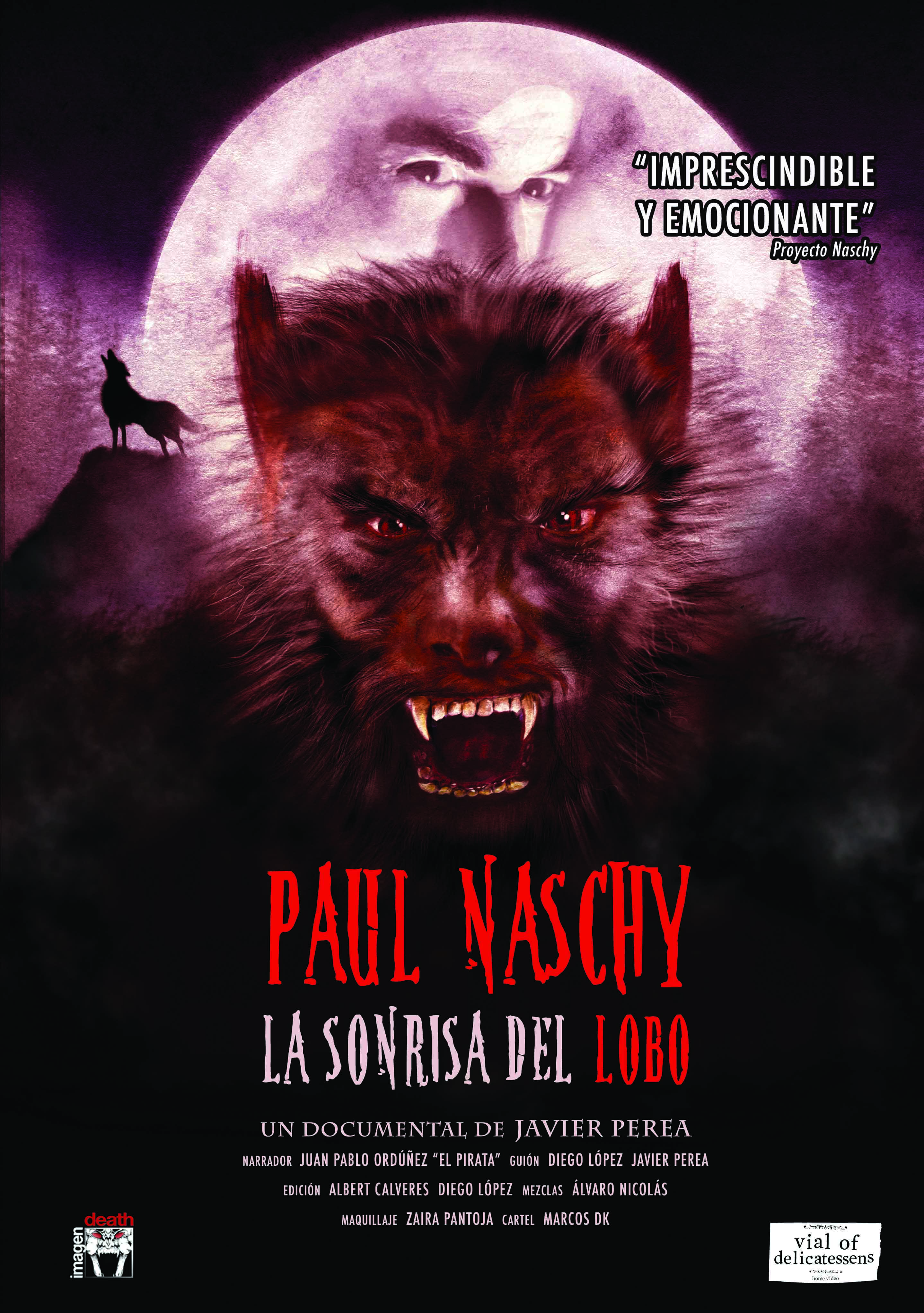 Desde que supe de la existencia del material que conforma el documental La sonrisa del lobo, casi se trató de un empecinamiento personal el verlo editado alguna vez en DVD. Me enteré de su existencia por ciertas fotos de rodaje. Más tarde Javier Perea, director del mismo y alma mater de Imagen Death, una veterana distribuidora y productora toledana de objetos y películas ‘brutales y de culto‘ comenzó a mover unos flyers que anunciaban la buena nueva sobre el documental, o al menos su intención de editarlo. Mala idea la de Javier, que se encontró conque cada año le preguntaba por el dichoso documental. Tan pesado debí haberme puesto que Javier me pasó un primer montaje previo, pidiéndome opinión sobre el mismo. Pensé que, con sus más y sus menos, el material era interesante: Paul Naschy repasando todas sus intervenciones como hombre lobo en la pantalla. Una a una y en el marco de pintorescos rincones de Toledo que ya por si solos despiertan la imaginación del espectador. Un material casi en bruto con algunas deficiencias de sonido, pero que mostraba a un Naschy 100% puro. Sin duda un metraje con muchas posibilidades, tal y como quedó demostrado cuando se proyectó en la edición de 2013 del Festival de Sitges.