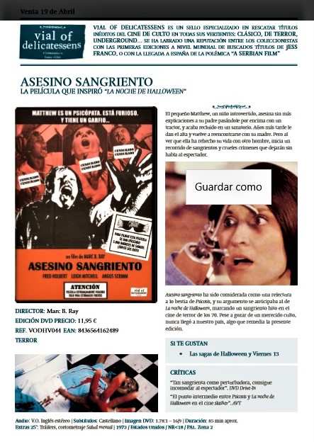 Y ahora, por fin, lo tenemos disponible y en las mejores condiciones de la mano de Vial of Delicatessens, que ha tratado este documento con el cariño que merece, añadiendo unos extras íntimamente relacionados con el mismo que dan aún más valor a este DVD que es, tal y como indicamos en su carátula, imprescindible para los fans de Naschy y del Fantaterror