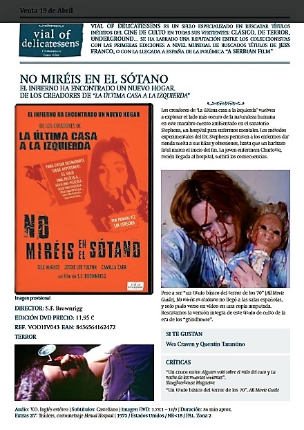También podrá encontrarse días después en tiendas especializadas, “Freaks” en Barcelona (Calle Ali Bei, 10) y el cine “Artistic Metropol” en Madrid (Calle Cigarreras, 6)