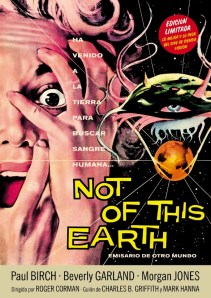Con su casting habitual encabezado por el inquietante Paul Birch, la reina de la serie B Beverly Garland y los siempre divertidos Jonathan Haze y Dick Miller, y cortesía de un guión del vivalavirgen Chuck Griffith (Un cubo de sangre, La tienda de los horrores) y de Mark Hanna (El ataque de la mujer de 50 pies), Roger Corman, el stajanovista del cinema bis, nos ofrece con NOT OF THIS EARTH los 65 minutos de humor negro más trepidantes y descabellados de la ciencia ficción de los años 50. Su mejor trabajo hasta la fecha… Una película de otro mundo.