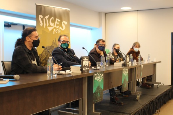 A las 12:30 le llegó el turno a Sombras de Caligari. Cien años de cruces y diálogos con el primer gran clásico del fantástico, libro oficial de Sitges 2020 centrado en el ítem de este año, el caligarismo y el centenario del clásico ‘El gabinete del doctor Caligari’. De nuevo con Desireé de Fez conduciendo y los coordinadores del libro Ángel Sala (director artístico del festival) y Jordi Sánchez-Navarro, se abrió esta presentación, un apasionante viaje a la génesis de Caligari, su marco sociopolítico y los asuntos, la puesta en escena y los recursos narrativos de la película en el cine y la televisión posteriores. Los asistentes también participaron de este encuentro en el que no faltaron el resto de articulistas de la obra, Lluís Rueda, Alan Salvadó, Carlos Tabernero y Violeta Kovacsics. Jorge Gorostiza, fue la única ausencia ya que las circunstancias impidieron su desplazamiento desde Gran Canarias. Una gran presentación en tiempos ciertamente caligarianos.