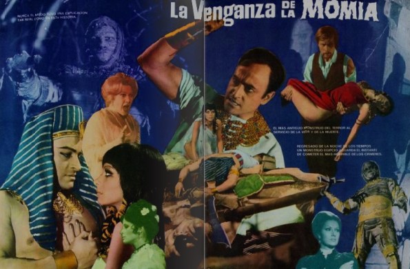 Había leído no sé donde que la ambientación de La Venganza de la momia era ridícula, pero les aseguro que ha sido muy cuidada, tanto la ambientación egipcia como la del Londres de principios del siglo XX, desplazándose el equipo allí para rodar algunas escenas clave, como la de la persecución en las alcantarillas, que Naschy recuerda como un «desagradable lugar». Si la ambientación está cuidada, también lo está el vestuario, partiendo desde la original momia a los trajes y vestidos de época que tan bien lucen Jack Taylor, María Silva y la debutante venezolana Rina Ottolina, que como hija de uno de los productores tenía que actuar, no quedando del todo mal ese permanente estado alelado que luce, que el guión achaca a que está siendo llamada por la momia Amen-ho-tep, que ha detectado en ella a la reencarnación de su amor.