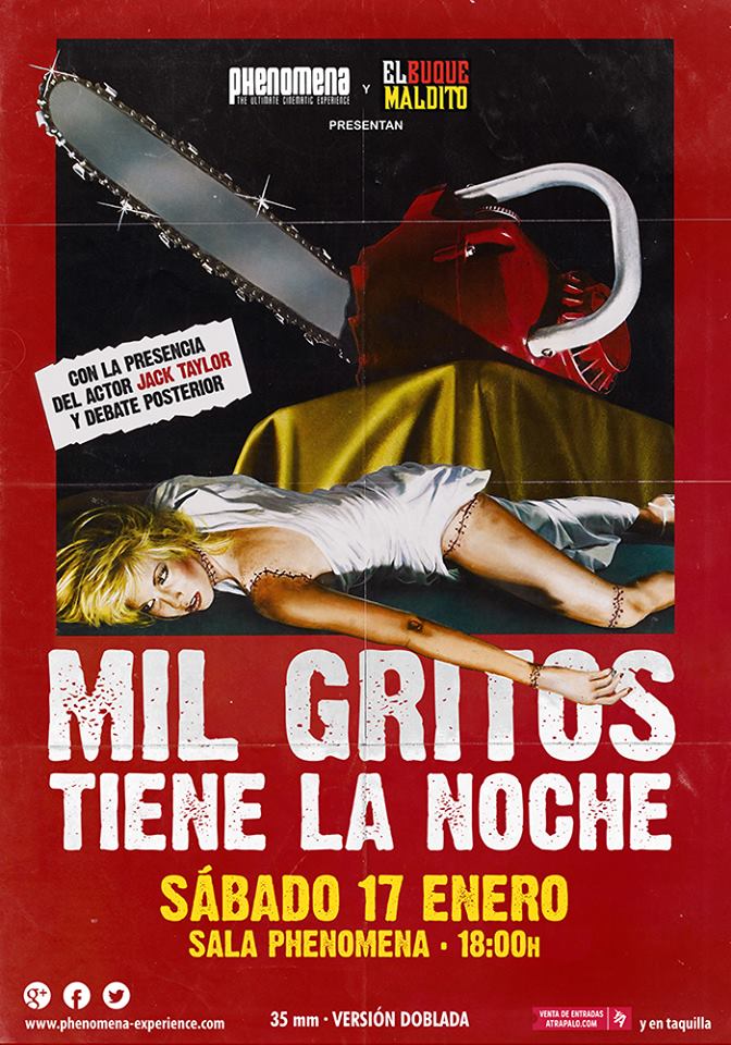 La tarde se inició con el documental Jack Taylor, testigo del Fantástico (Diego López, 2018), en el que el veterano actor repasa su vida y carrera. La entrevista, eje central del cortometraje documental, tuvo lugar en el Saló del Tinell, donde en 1970 Jesús Franco rodó con Christopher Lee, Soledad Miranda y él mismo Jack Taylor, El conde Drácula (Nachts, wenn Dracula erwacht). A pesar de estar anunciada la presencia del actor, este no pudo acudir por razones de salud, pese a lo cual se contó con la presentación de Diego López y la lectura de un mensaje Jack Taylor al público asistente y al festival, pues cabe recordar que el veterano actor ya fue invitado de honor en el año 2013, evento durante el cual Serendipia pudo realizarle una extensa entrevista.