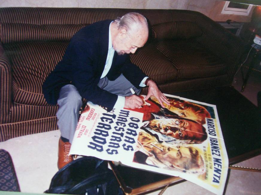 Como había estudiado cine con José Martínez Suárez, me hizo el contacto para entrevistar a Narciso y platicar con él durante hora y media. Le regalé el afiche de “Obras maestras del terror”, que por suerte no tenía. Generalmente los frikis y los coleccionistas como yo, tenemos miles de veces más material que los que los hacen realidad. Cuando conocí a Chicho observé lo mismo. Ibáñez Menta pasa al mundo inmaterial y a convertirse en leyenda (aunque ya lo había sido en vida) y luego de 2 meses de depresión, decido hacer el documental. Fue arduamente complicado, porque no tuve ayudas ni subsidios de ningún tipo, salvo de amigos y coleccionistas que aportaron su valioso material, sumado al mío, para este homenaje. 5 años y medio de trabajo. Lo exhibí en muchas muestras y festivales, aquí en Latinoamérica y Europa. Incluido Sitges, donde ahí toqué el cielo.
