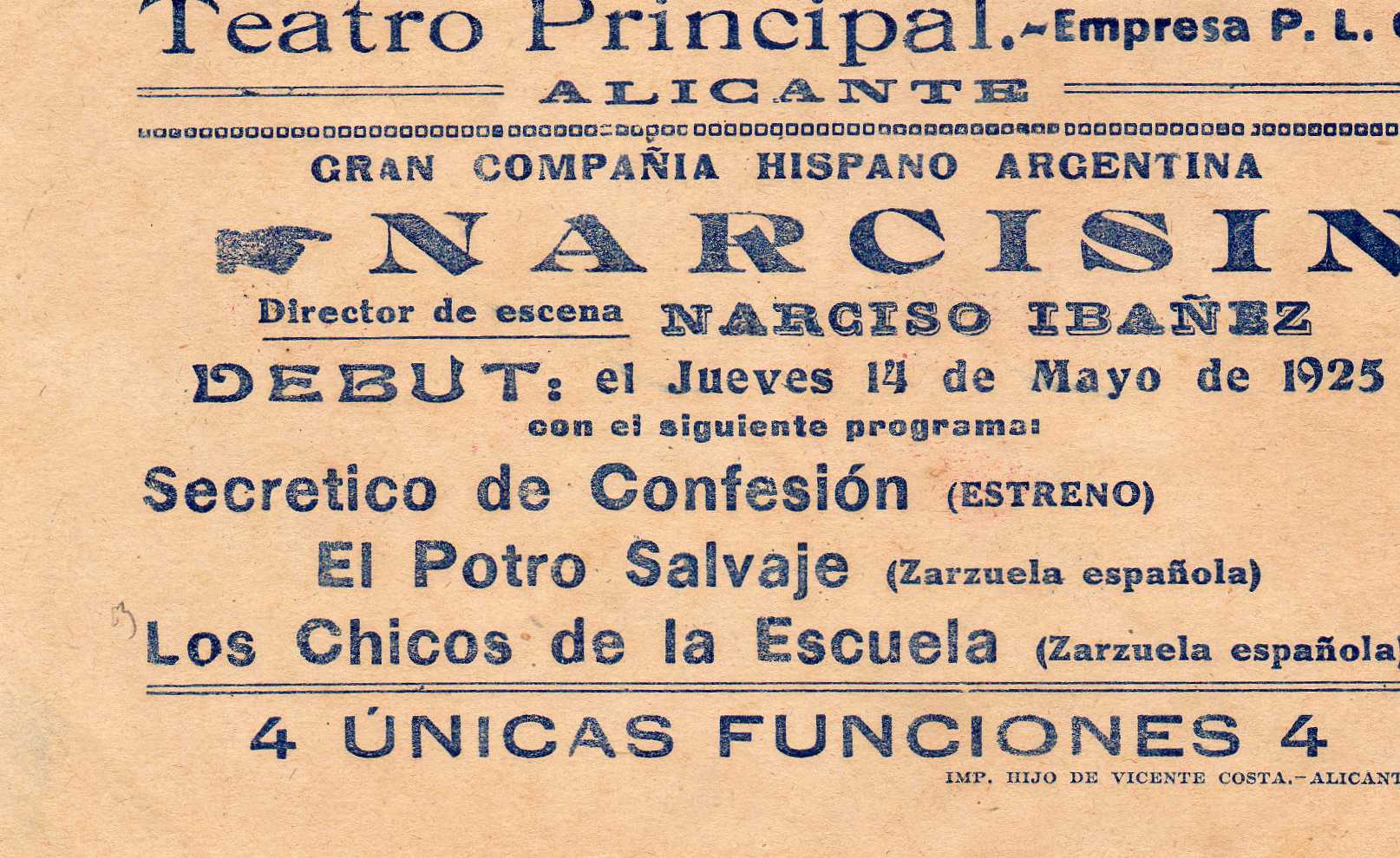 Programa teatral barcelonés de El Agujerito de Luis Peñafiel e interpretada por Narciso Ibañez Serrador.