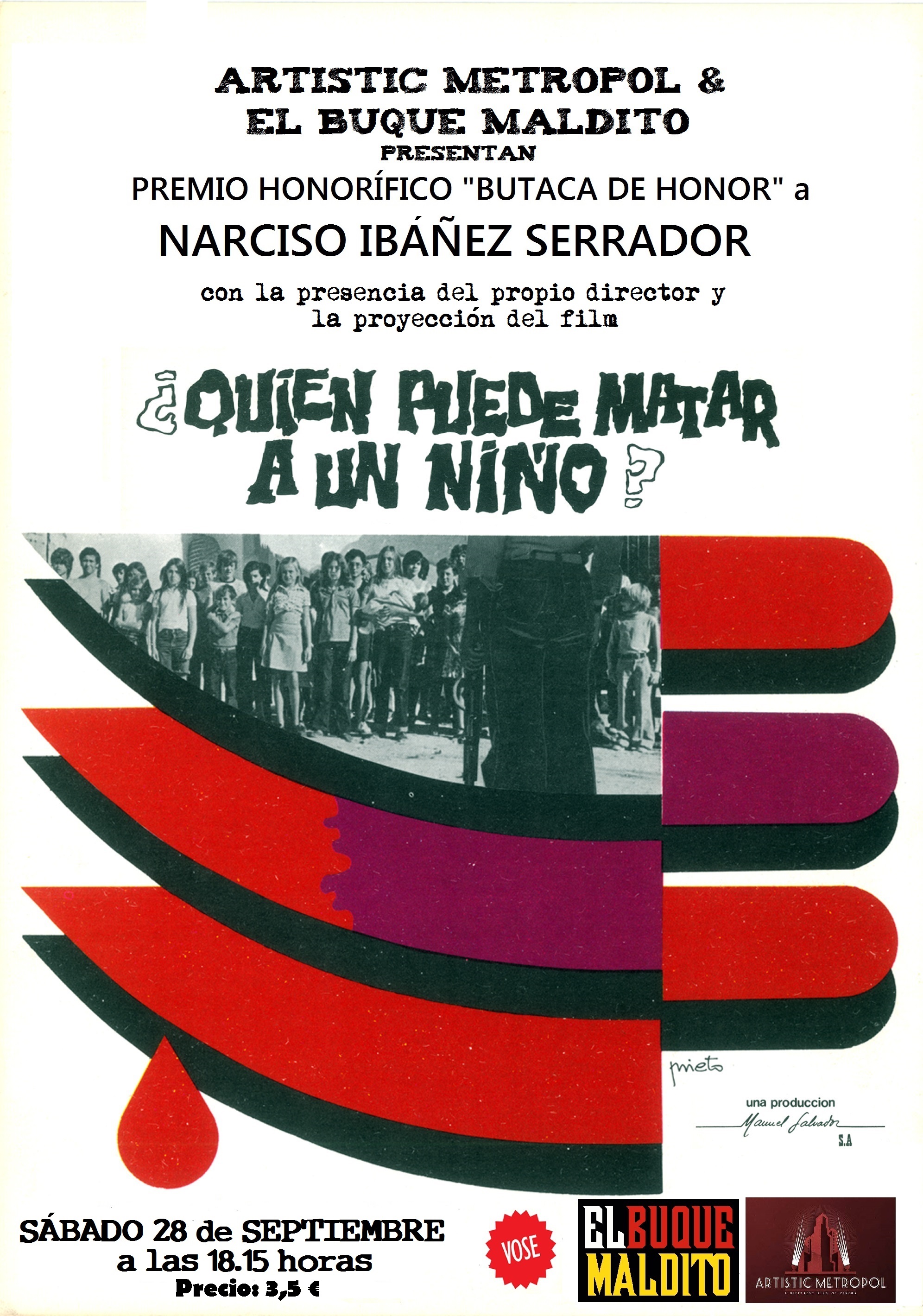 Chicho Ibáñez Serrador recibirá personalmente el premio Maestro del Fantástico, galardón más importante del festival, en la gala inaugural que tendrá lugar el miércoles 25 de octubre en Cinesa Proyecciones. Cerrando el homenaje el clásico ¿Quién puede matar a un niño?, con la proyección que se celebrará el domingo 29 de octubre en la misma sede del festival.