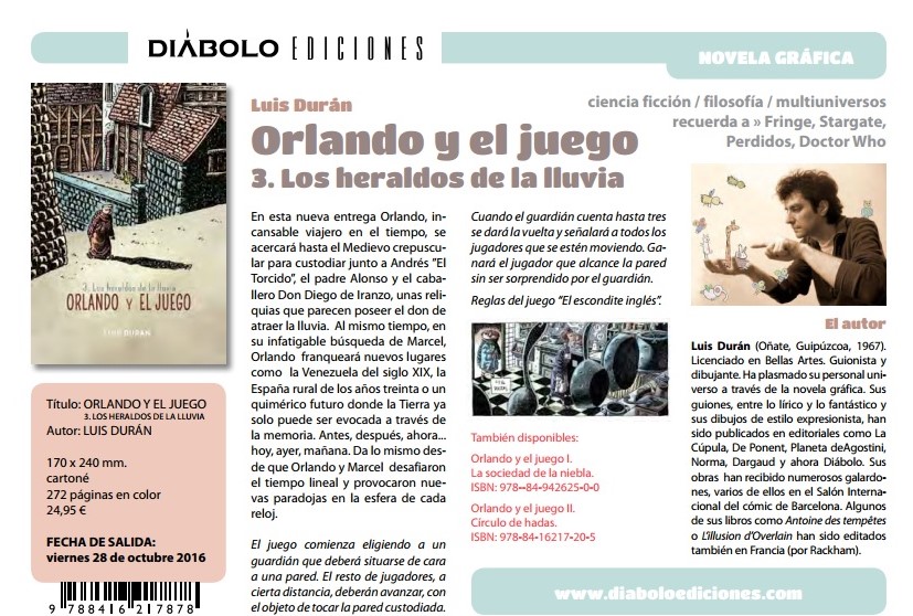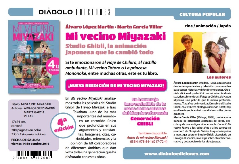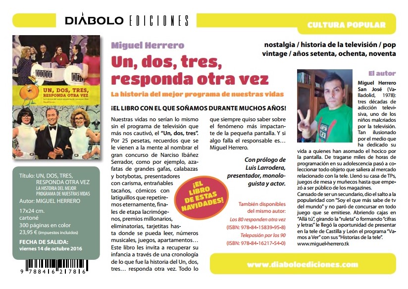 Diábolo presenta sus novedades para octubre de 2016 y a su linea de cultura popular y cómic, añade otra de infantil. Entre los nuevos títulos que la editorial presenta, nos encontramos con uno de lo más suculento dedicado al concurso más popular de todos los tiempos en España, Un, dos, tres, responda otra vez, el espacio televisivo que hizo que un director de cine tan competente como Narciso Ibáñez Serrador, Chicho, limitara su labor en ese campo a dos películas, dos obras maestras que nos dejaron con ganas de más. Pero el concurso hizo felices a muchas generaciones de españoles, que disfrutaron y aprendieron durante las diferentes épocas del concurso. Este libro nos ofrece la historia de este espacio y sus protagonistas. Pero la editorial nos ofrece mucho más: como la cuarta edición de Mi amigo Miyazaki, así como cómics y cuentos de lo más interesantes.