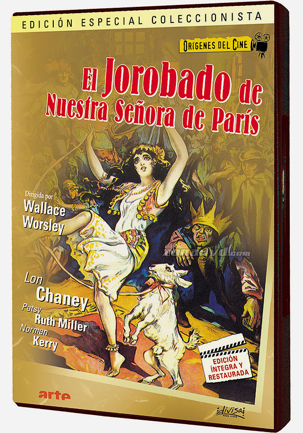 Por fín Divisa, como no podía ser de otra forma, edita de una forma digna este film clave del gran Lon Chaney. No llega a tener los extras de la edición americana de Image, ya que no incluye (o al menos la promoción no lo especifica), la reproducción del programa original ni las imágenes en 3-D (para las que incluían las gafa bipolares correspondientes). Aún así contiene como extras un fragmento del film de 1913, Alas and Alack, donde Chaney interpreta dos papeles (algo bastante habitual en el actor): uno de ellos un jorobado. Además de escenas documentales que muestran a Chaney, sin maquillar, en el decorado de Notre Dame.