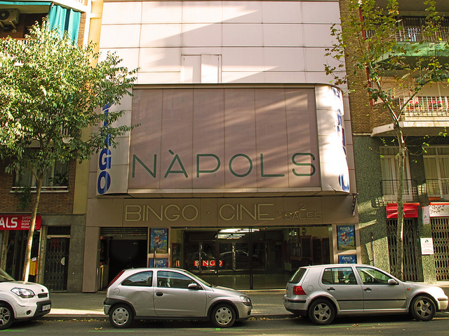 pantalla de 9×5 metros y equipada con sonido Magnasound, y la pequeña con 178 asientos y pantalla 7×3 metros, retornando a los programas dobles populares y con un bingo instalado en el sótano. Como curiosidad señalar que esta sala estaba decorada totalmente de color negro (menos la pantalla y el suelo) con la intención de conseguir un ambiente especial. El empresario Enric Pérez, responsable también de los Cines Verdi, quería ofrecer en el Nápoles una programación más popular que la que presentaba en las salas de Gracia. También comenzaron a programarse sesiones golfas, siendo especialmente populares las de cine de terror. En 1994 el cine Napoles inició una nueva política de programación a base de versiones originales subtituladas, remodelando la fachada, el patio de butacas, el vestíbulo, los lavabos y perfeccionando el equipo de sonido. En enero de 1995 catalanizó su nombre y remodeló de nuevo su fachada. A partir de entonces fue agonizando lentamente apostando por la programación infantil hasta su cierre en el verano de 2012.