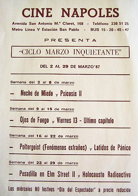 Carlo, Georg Jacoby, 1960) un deslucido programa doble que sería el primero de los muchos que se proyectarían hasta los años ochenta, momento en el que se convertiría en un cine de repertorio similar al Condal que llegó a ofrecer títulos en exclusiva tan dispares como La duquesa del diablo (Isabella, duchessa dei diavoli, Bruno Corbucci, 1969) o Galien, el monstruo de las galaxias ataca la tierra (Chikyû kogeki meirei: Gojira tai Gaigan, Jun Fukuda, 1972). El Nápoles se mantuvo dando traspiés hasta 1988, momento en el que sufrió su primera y traumática reforma que lo transformó en sala doble: la más grande con 306 butacas con