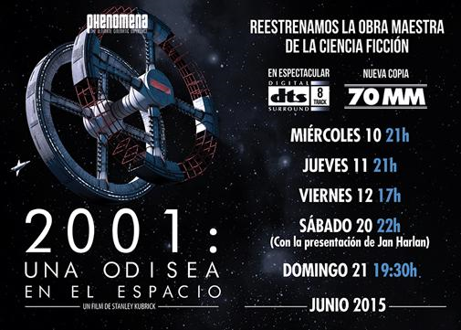 Phenomena recupera en la gran pantalla 2001: Una odisea en el espacio, la extraordinaria epopeya espacial con la que Kubrick dio un giro a la ciencia-ficción. El cine, ubicado en Sant Antoni Maria Claret, 168 de Barcelona, proyectará una nueva copia del film en 70 mm, y con la espectacularidad del sonido DTS. La sala acogerá un total de cinco pases de esta nueva copia, entre el 10 y el 21 de junio, como parte del ciclo que le dedica al director a lo largo de todo el mes.