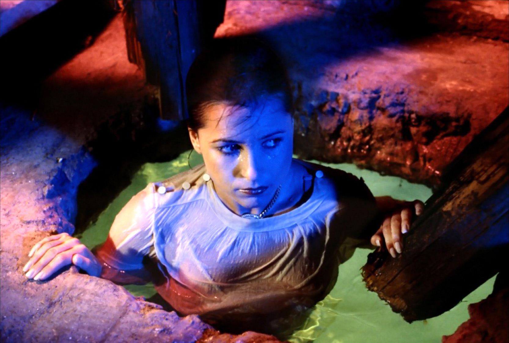 Fue hace muchos años. Cuando vivir en su plenitud un festival de cine era todavía un sueño lejano que se limitaba a breves paseos por su periferia, cuando visité el off-festival de uno, consistente en una carpa gratuita en pleno paseo marítimo. Ver alguna película allí resultaba de lo más incómodo, pues cada vez que alguno de los numerosos curiosos abría sus cortinas para ver qué se cocía en su interior, se filtraba la luz profanando su oscuridad y turbando nuestra atención. También creo recordar que la película en cuestión se proyectaba en su idioma original y sin subtítulos, motivos ambos por los que desistí de verla completa. Pero antes de marchar vi una escena. La escena: el personaje se ha colado en un edificio de singular arquitectura. En el sótano ve un agujero cubierto de agua. Se le caen las llaves por él y vemos que ese agujero lleva a una habitación sumergida. La protagonista se zambulle en el agua para recuperar sus llaves y vemos con ella que se trata de una suntuosa estancia repleta de lámparas de araña, cuadros misteriosos, una puerta que se abre y se cierra por la que entra una extraña luz… una onírica escena submarina que se interrumpe bruscamente cuando aparece un putrefacto cadáver que parece asir a la espantada protagonista, que emerge aterrada a la superficie a toda velocidad. Simple ¿no? Sencillo ¿verdad? Pues pueden creerme cuando les digo que esas imágenes se me quedaron grabadas desde entonces y siguen fascinándome por su belleza. Por su magia. Aún no sabía que pertenecían a Inferno (1980), pero no recuerdo como, siempre supe que eran de Dario Argento.