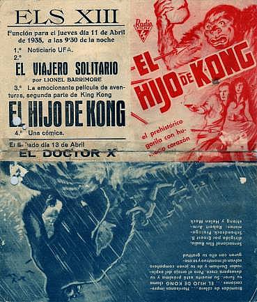 Pero como todos sabeis, Kong tuvo una descendencia albina, tal y como se muestra en la secuela El hijo de Kong (The Son of Kong, 1933 Ernest B. Schoedsack), que se estrenó en España también en la época repitiendo el formato grande de programa, aunque notablemente inferior: