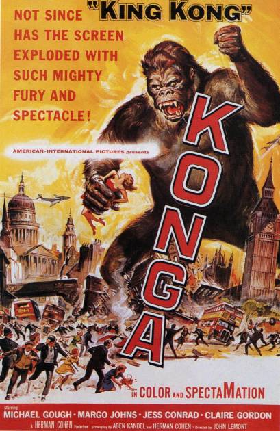 Para la reposición española de King Kong que Rey Soria film distribuyó en 1966, no se le ocurrió otra cosa a la distribuidora que utilizar el cartel de la película Konga (USA/UK, 1961 John Lemont) , otro film con simio gigante aunque ambientado en Inglaterra. Como se puede ver en el cartel español, han tenido el detalle de suprimir el Big Beng (ya que es bien sabido que la acción se desarrolla en New York), pero han dejado unos aviones a reacción que poco tienen que ver con los biplanos del Kong original, y el clásico autobús de dos pisos característico de Londres, que queda totálmente fuera de lugar en King Kong.