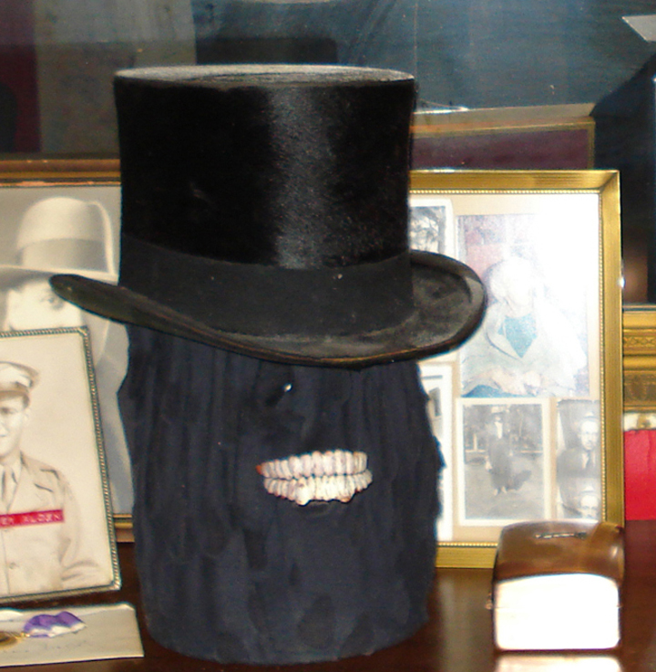 Y las dos piezas originales que se encontraban en poder de Forrets J. Ackermann y que ahora… ¡Vaya usted a saber donde han ido a parar!: El sombrero (con el nombre del actor en el interior que autentifica la pieza) y que fue localizado en el guardarropía de la Metro por el ahora escritor sobre cine de terror clásico Philip J. Riley y la todavía no superada dentadura que lucía Lon Chaney en el film.