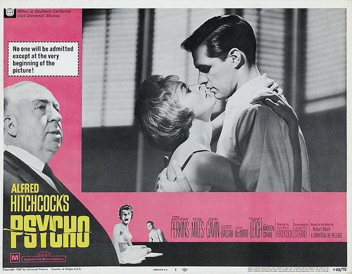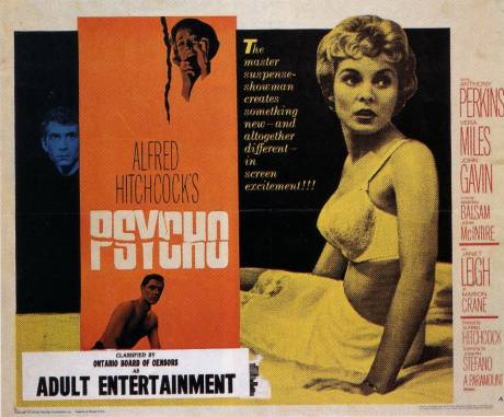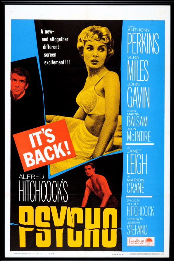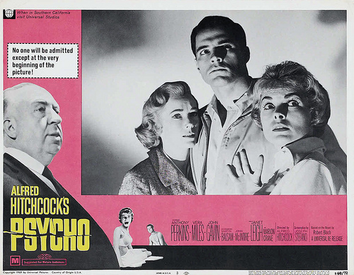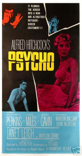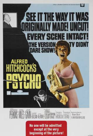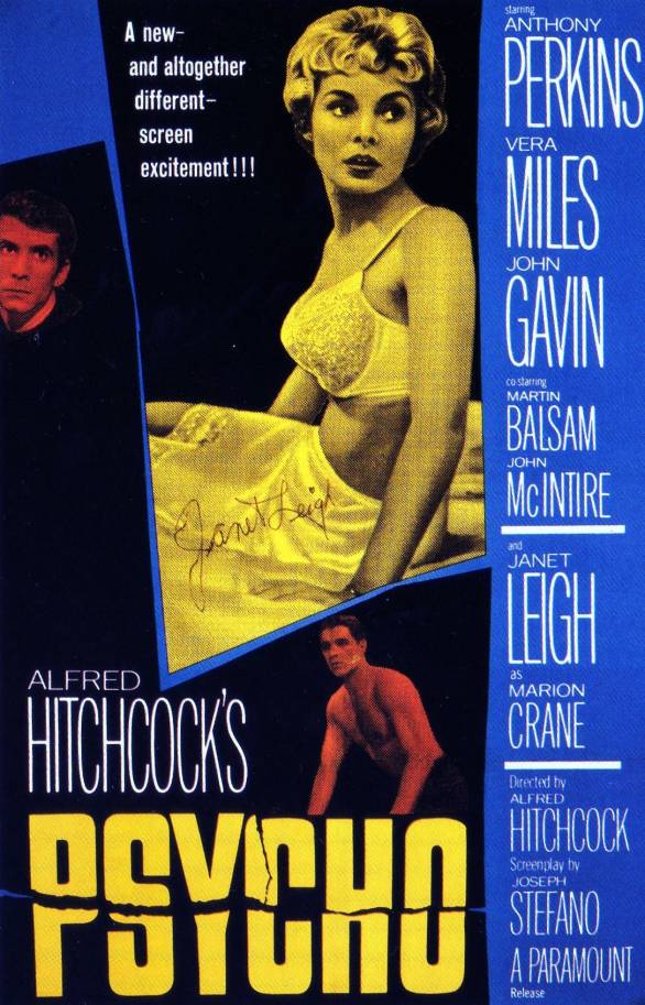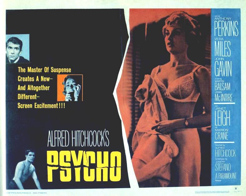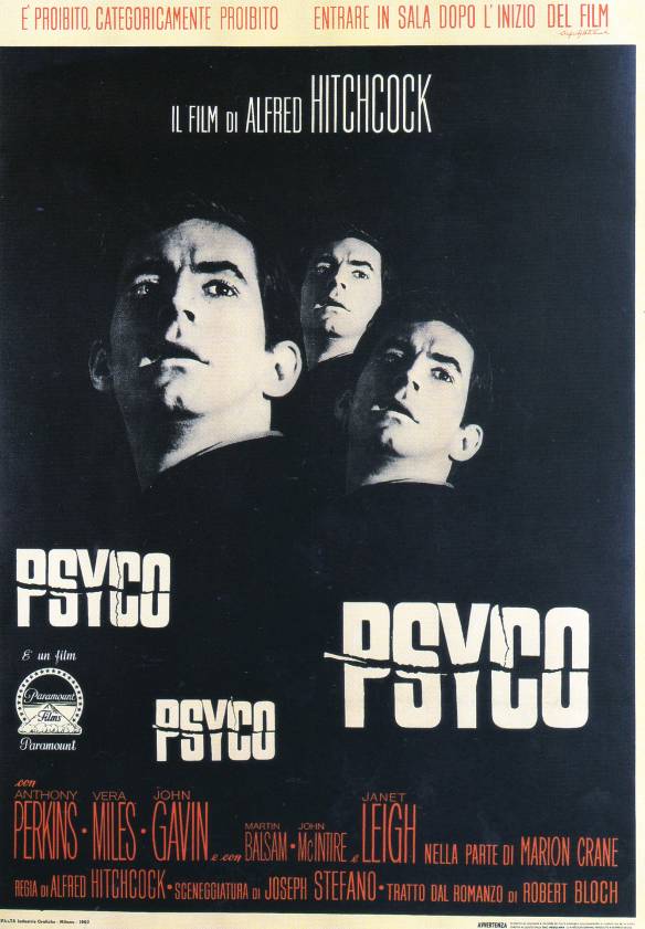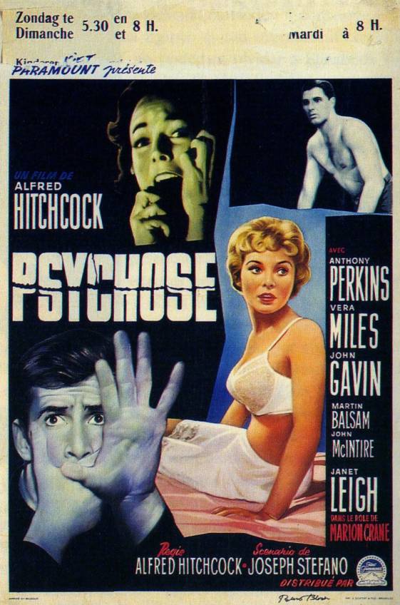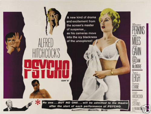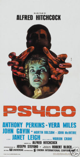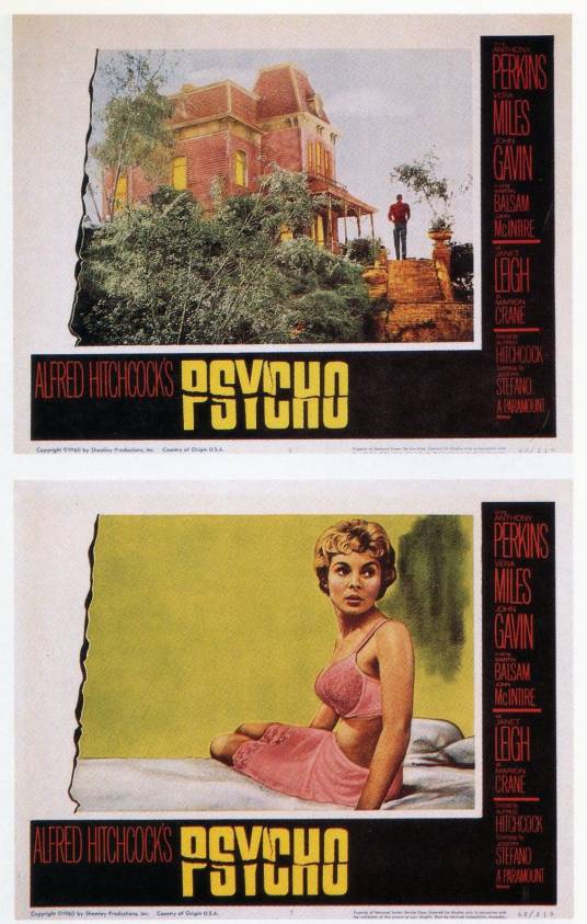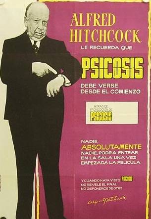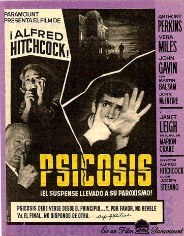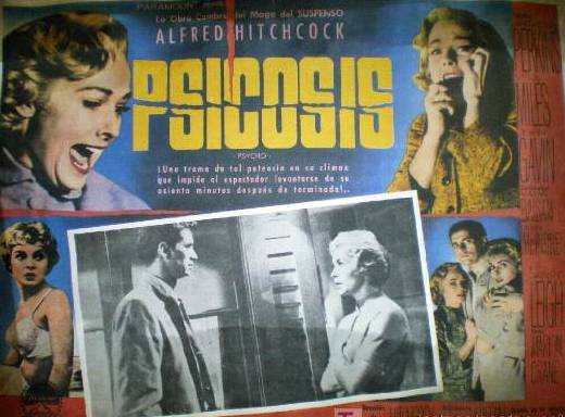 Aquí tenemos el programa y los dos carteles de cine que se editaron para su estreno, que fue el dos de abril de 1961. En todo el mundo se utilizó una campaña de promoción que recalcaba que una vez comenzada la película, no se dejaría entrar a nadie en el cine, así como la petición, por parte del mismo Hitchcock, de que no se desvelara el final de la película. También se resaltó el magnífico busto de Janet Leigh aprisionado en las copas de su sujetador blanco pero… aquí en los sesenta no se podía permitir esa osadía. Aunque aún así el cartel me parece fantástico.