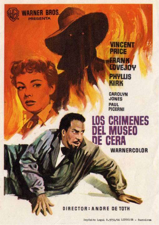 Pero cuando Vincent Price brilló especialmente fue con su retorno triunfal al cine de terror con Los crímenes del museo de cera (House of wax, 1953 André De Toth) primera película rodada en 3-D en la que Vincent luce un impactante e inolvidable maquillaje que lo aupó al panteón del cine de terror. A partir de ahí encadena algunos films fantásticos como La mosca (The Fly, 1958 Kurt Neumann), El regreso de la mosca (Return of the Fly, 1959 Edward Bernds), The Bat (1959, Crane Wilbur) y House on Haunted Hill (1959) y The Tingler (1959), ambas dirigidas por el genio del marketing William Castle.