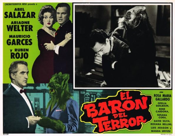Abel Salazar como héroe de la función, algo bastante habitual en las películas que produjo, aunque en 1962 probó fortuna encarnando un rol terrorífico en El barón del terror (Chano Urueta), que ha terminado siendo una de las piezas clave del mejor cine psicotrónico. Su baron Vitelius d’Estera, que se transforma en un monstruoso ser sorbecerebros, ha contribuido a que sea considerada cinta de culto en Estados Unidos bajo el nombre de Brainiac. Tampoco conviene olvidar a Enrique Rambal, que interpreta al torturado músico que ha vendido su alma al diablo y que como efecto secundario a ese pacto se transforma en una monstruosa bestia cuando toca o suena una melodía concreta en el piano. Rambal, español nacido en Valencia e hijo del importante actor y director escénico teatral de idéntico nombre, se trasladó a México donde vivió durante toda su vida y participó en gran número de cintas, entre las que sobresale El ángel exterminador (1962) de Luis Buñuel, donde por cierto también encontramos a la también española Ofelia Guilmáin, que interpreta en la cinta de Baledón a Cornelia, la posesiva madre del músico. La actriz también se instaló en México, aunque en su caso obligada por razones políticas tras el final de la Guerra Civil.