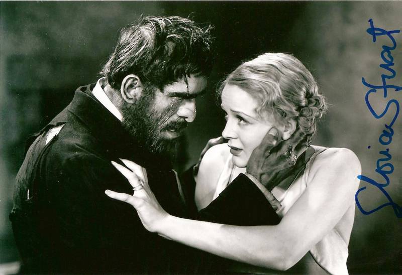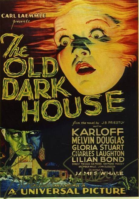 (1932, Marion Gering); la londinense Lilian Bond, con un papel de corista y chica «moderna» ; el elegante Melvyn Douglas realizando uno de los papeles de galán que tan bien se le daban, aunque en esta ocasión algo más rico en contrastes e ironía; Raymond Massey, que de vuelta a Inglaterra rodaría la memorable La vida futura (Things to Come, 1936 William Cameron Menzies) . Tanto Douglas como Massey llegaron de rebote a The Old Dark House cuando se demoró el rodaje de Adventure Lady . Y finalmente la bellísima Gloria Stuart, como esposa de Massey, que se pasa toda la película, por capricho de su director, con un traje de noche blanco que no hace más que poner burro al bueno de Morgan (Karloff) y naturalmente a nosotros. Parece que Gloria Stuart gusto al Whale, ya que volvió a rodar a sus órdenes sus dos siguientes films: El hombre invisible (The Invisible Man, 1933) y El beso ante el espejo (The Kiss Before the Mirror, 1933).